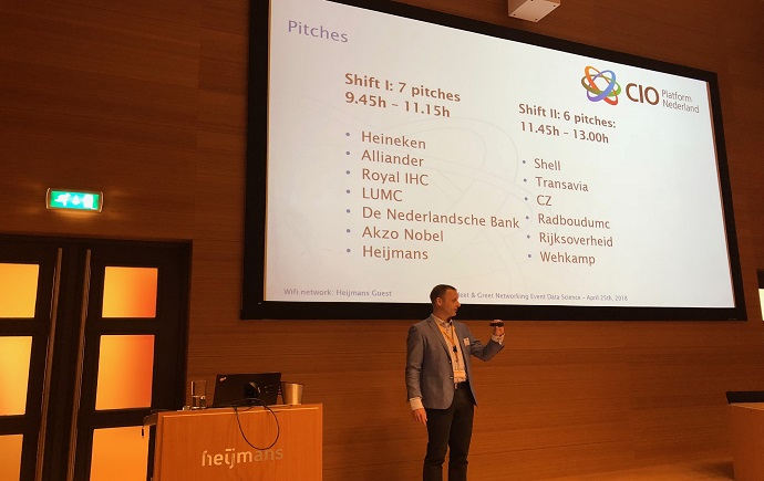 Monday 30 April 2018 On Wednesday April 25th the first data science Meet & Greet networking event took place. 13 members of the CIO Platform Nederland introduced more than 50 data science students in an original and creative way into the daily practice of data science within a large corporate.